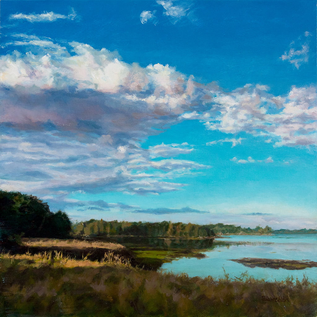 Maine Coast Light – Oil on board, 12″ x 12″, Sold